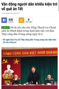 Quốc hội thông qua Luật Tiếp công dân năm 2013 có hiệu lực thi hành từ ngày 01/7/2014 quy định cụ thể về trách nhiệm tiếp công dân; quyền và nghĩa vụ của người đến khiếu nại, tố cáo, kiến nghị, phản ánh. Nhưng có những quan đầu tỉnh nế tránh trách nhiệm tiếp công dân. Luật có hiệu lực nhưng họ vẫn không tôn trọng Luật!