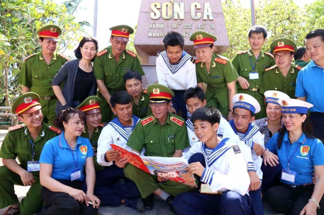 | Trung tướng Phan Văn Vĩnh và các chiến sĩ đảo Sơn Ca. |